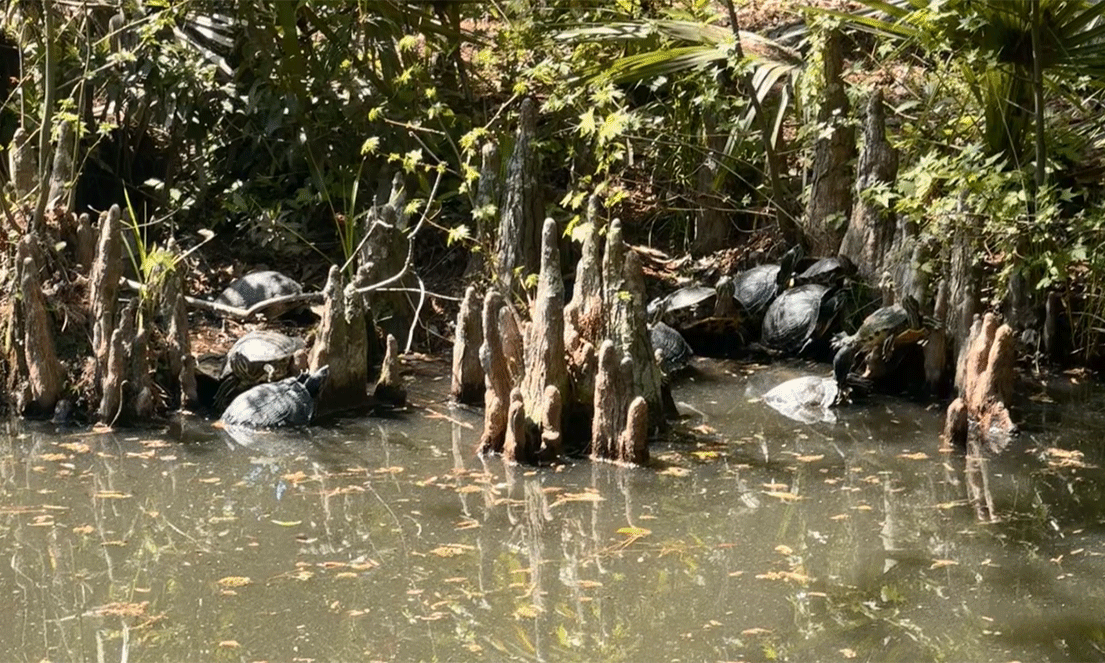 - High edge-to-water ratio with lots of bank and shallow margins where turtles and ducks spend time